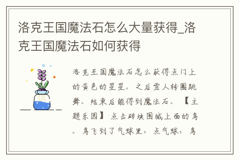 洛克王國魔法石怎么大量獲得_洛克王國魔法石如何獲得
