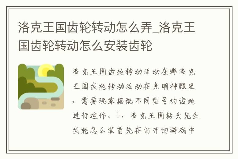- 洛克王國齒輪轉(zhuǎn)動怎么弄_洛克王國齒輪轉(zhuǎn)動怎么安裝齒輪