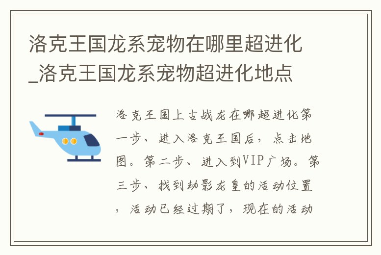 洛克王國龍系寵物在哪里超進化_洛克王國龍系寵物超進化地點