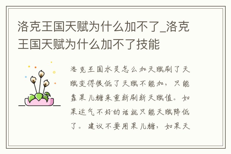 洛克王國天賦為什么加不了_洛克王國天賦為什么加不了技能