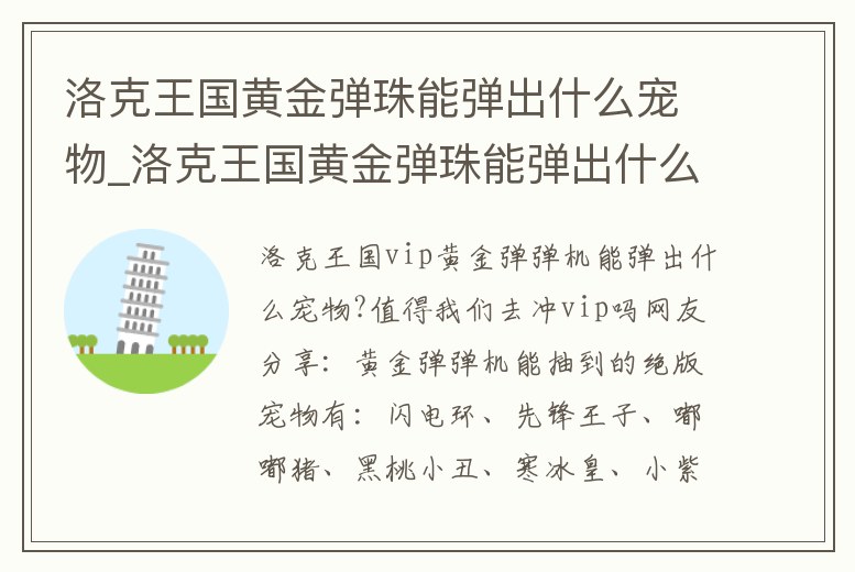 洛克王國vip黃金彈彈機(jī)能彈出什么寵物?值得我們?nèi)_vip嗎
