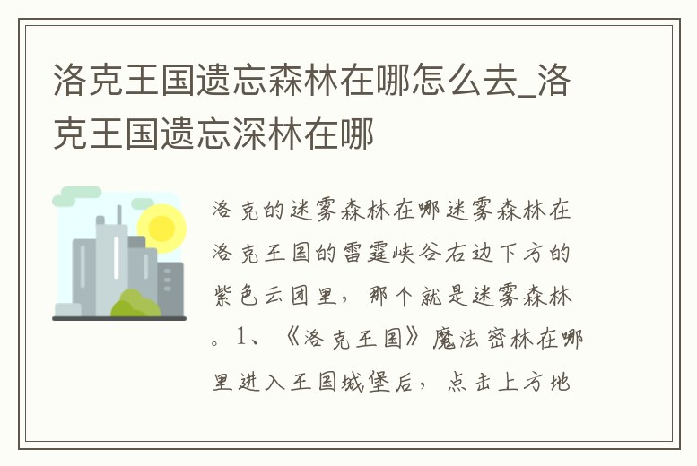 洛克王國遺忘森林在哪怎么去_洛克王國遺忘深林在哪