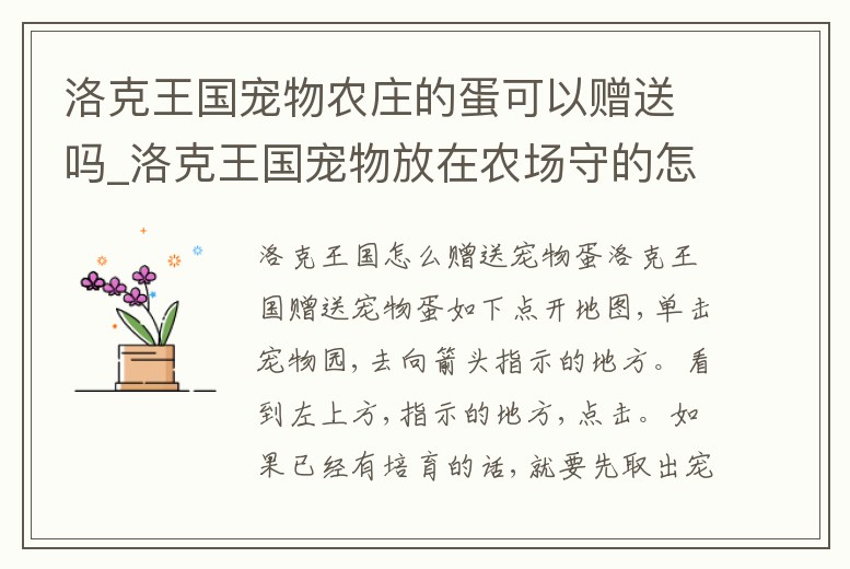 洛克王國寵物農莊的蛋可以贈送嗎_洛克王國寵物放在農場守的怎么帶走