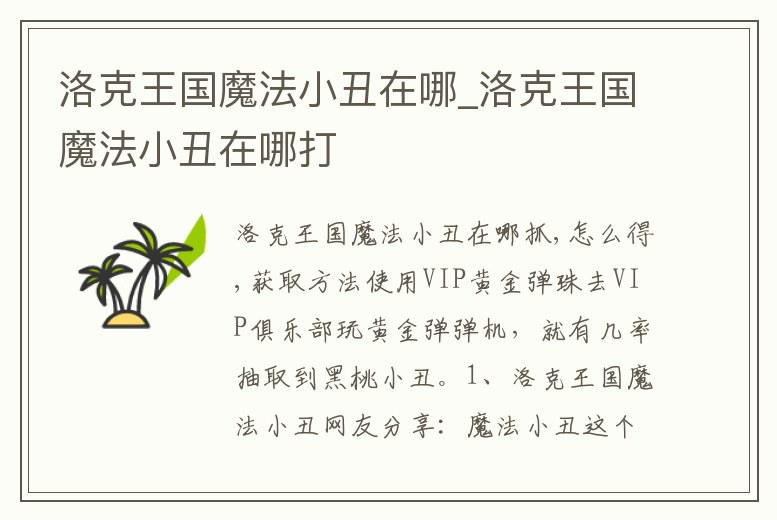 洛克王國魔法小丑在哪_洛克王國魔法小丑在哪打