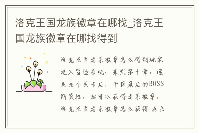 洛克王國龍族徽章在哪找_洛克王國龍族徽章在哪找得到