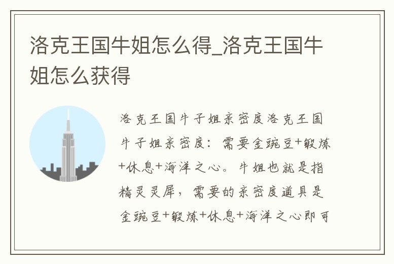 洛克王國牛子姐親密度:需要金豌豆+鍛煉+休息+海洋之心。牛姐也就是指精靈靈犀,需要的親密度道具是金豌豆+鍛煉+休息+海洋之心即可獲得精力10+魔攻10的屬性。洛克王國親密度是一個可以給寵物增加屬性的模式,可以通過特定的。