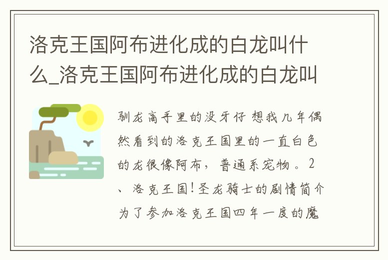 洛克王國阿布進化成的白龍叫什么_洛克王國阿布進化成的白龍叫什么