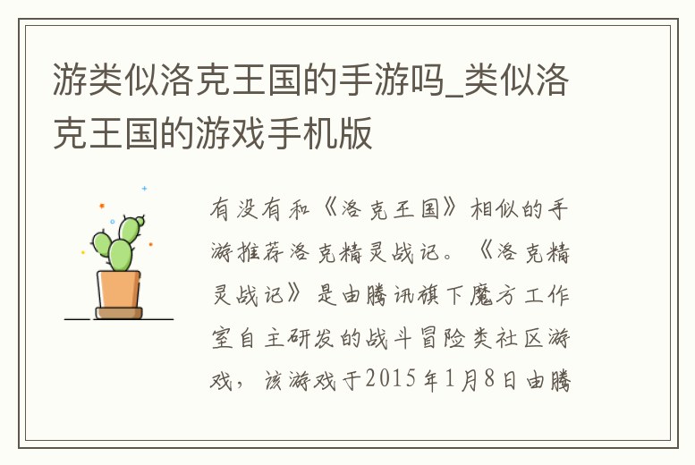 《掌上洛克》這個游戲是和洛克王國比較的相似的一個游戲了,我還是在應用寶這個寶貝里面給你找了半天找到的呢,還是應用寶比較的牛叉,游戲或者一些軟件真心是比較的多的呢。而且很多的游戲都是很好玩的呢,這個游戲的玩法。