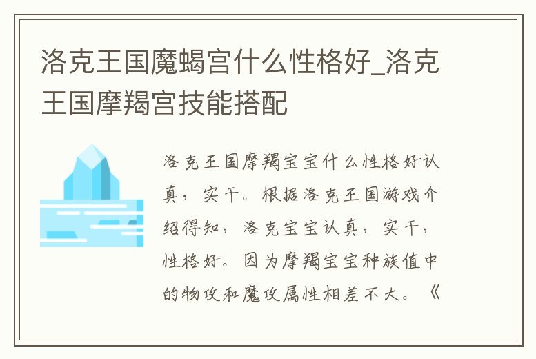 認真,實干。根據洛克王國游戲介紹得知,洛克寶寶認真,實干,性格好。因為摩羯寶寶種族值中的物攻和魔攻屬性相差不大。《洛克王國》是由魔方工作室開發,騰訊公司發行的一款在線綠色社區網頁游戲,于2010年發行。