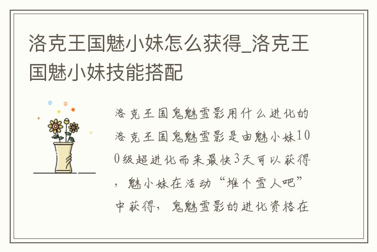 洛克王國魅小妹怎么獲得_洛克王國魅小妹技能搭配