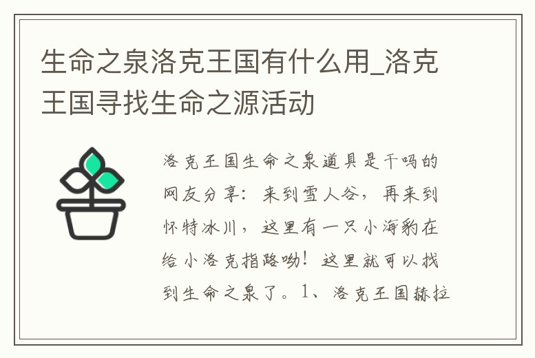 生命之泉洛克王國有什么用_洛克王國尋找生命之源活動