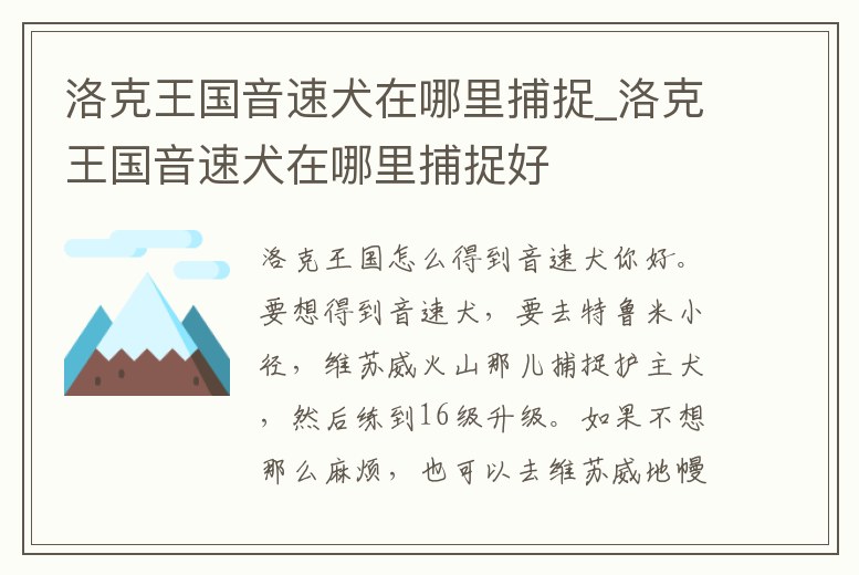 網友分享:在什么什么火山的第3層,就有音速犬16級的,但是我建議LZ,不要直接去抓音速犬,抓護主犬來練比較好,練的話天賦要比直接抓的音速犬高。參考資料:自己的經驗 。