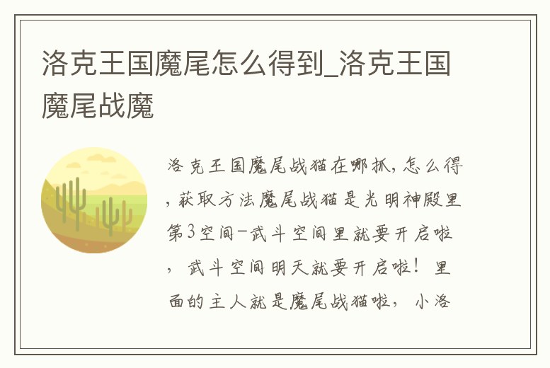 魔尾戰貓是光明神殿里第3空間-武斗空間里就要開啟啦,武斗空間明天就要開啟啦!里面的主人就是魔尾戰貓啦,小洛克們打敗她就可以獲得魔尾戰貓啦。