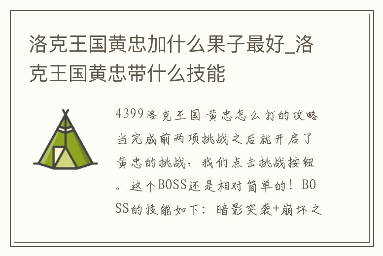 4399洛克王國 黃忠怎么打的攻略