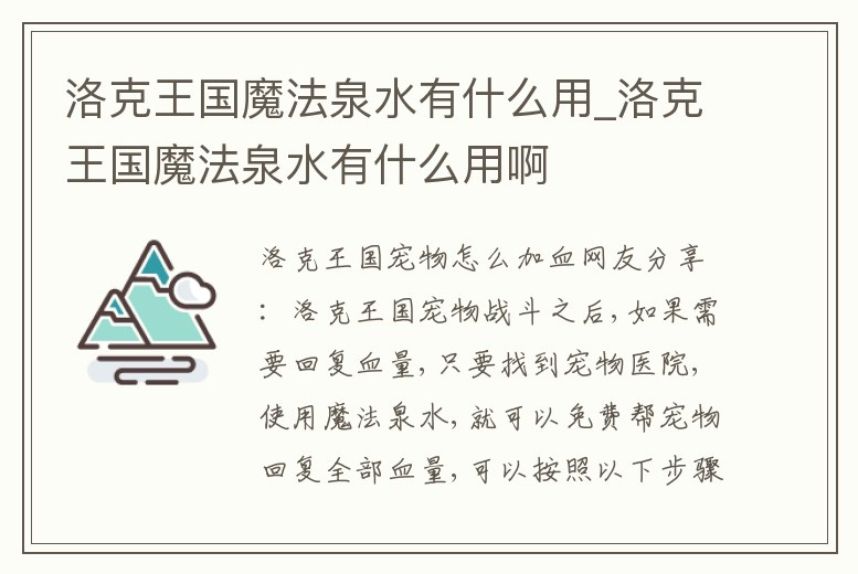 洛克王國魔法泉水有什么用_洛克王國魔法泉水有什么用啊