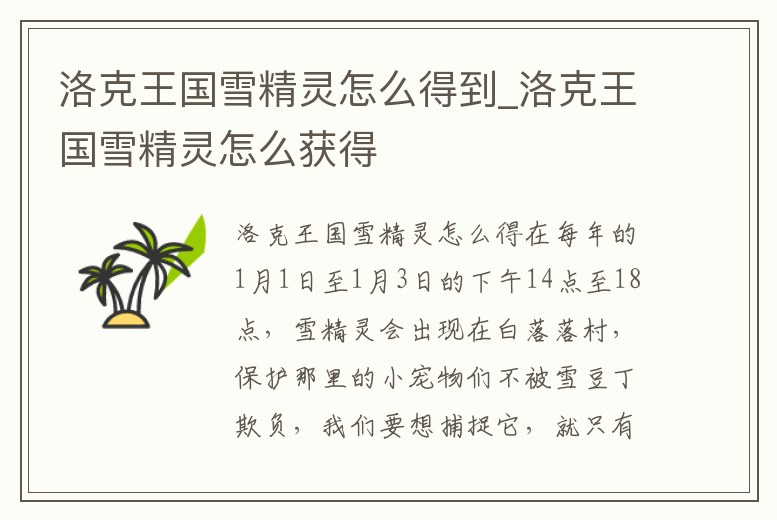 洛克王國雪精靈怎么得到_洛克王國雪精靈怎么獲得