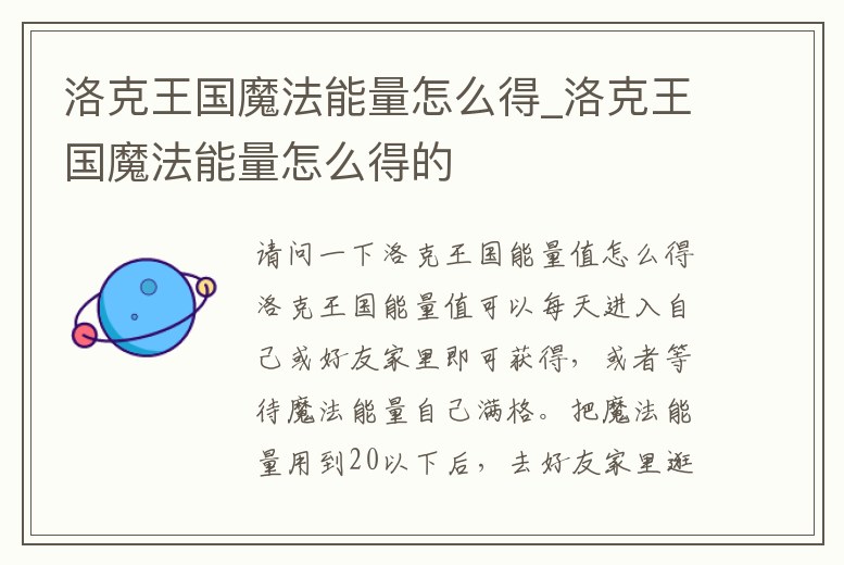 - 洛克王國(guó)魔法能量怎么得_洛克王國(guó)魔法能量怎么得的