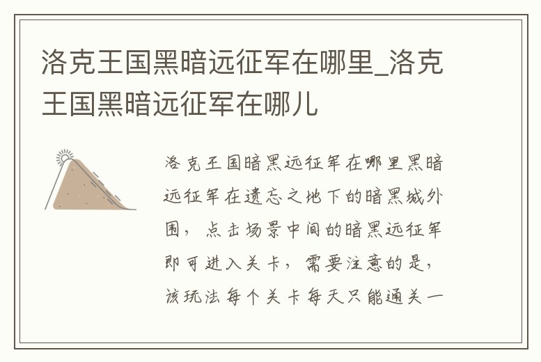 洛克王國黑暗遠征軍在哪里_洛克王國黑暗遠征軍在哪兒