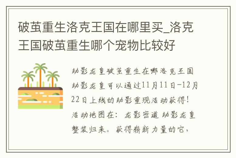 破繭重生洛克王國在哪里買_洛克王國破繭重生哪個寵物比較好