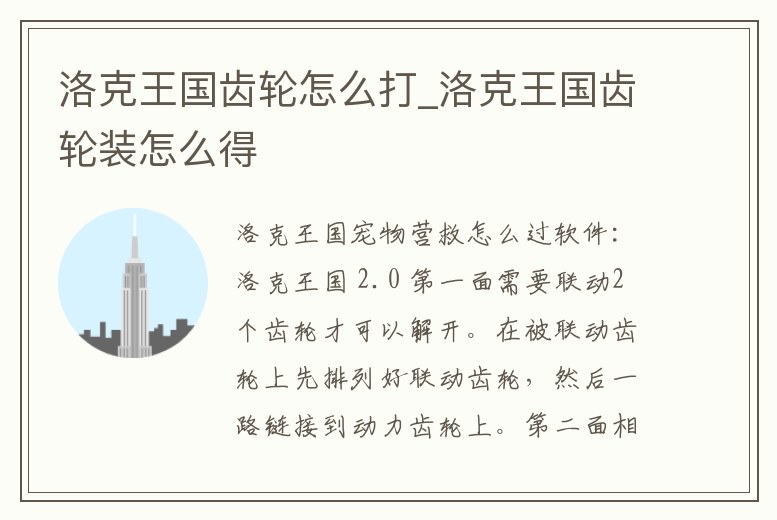 - 洛克王國(guó)齒輪怎么打_洛克王國(guó)齒輪裝怎么得