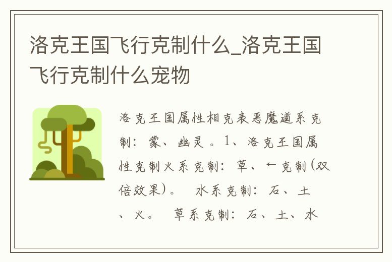 洛克王國飛行克制什么_洛克王國飛行克制什么寵物