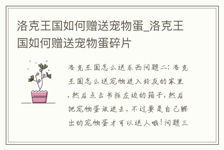 洛克王國如何贈送寵物蛋_洛克王國如何贈送寵物蛋碎片