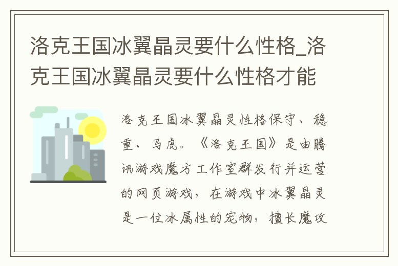 洛克王國冰翼晶靈要什么性格_洛克王國冰翼晶靈要什么性格才能進化