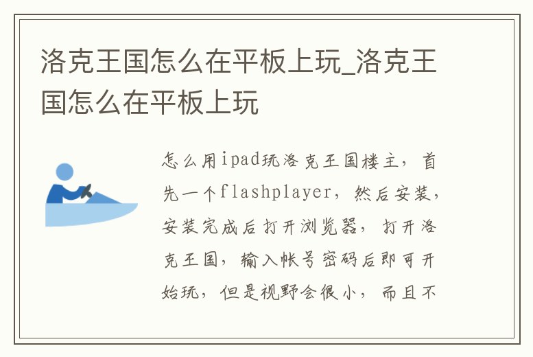 ipad可以玩的,因為他屏幕大,我就用ipad玩過。你打開瀏覽器,在百度上搜洛克王國,然后再點那個,就可以玩了,只不過有點卡 。