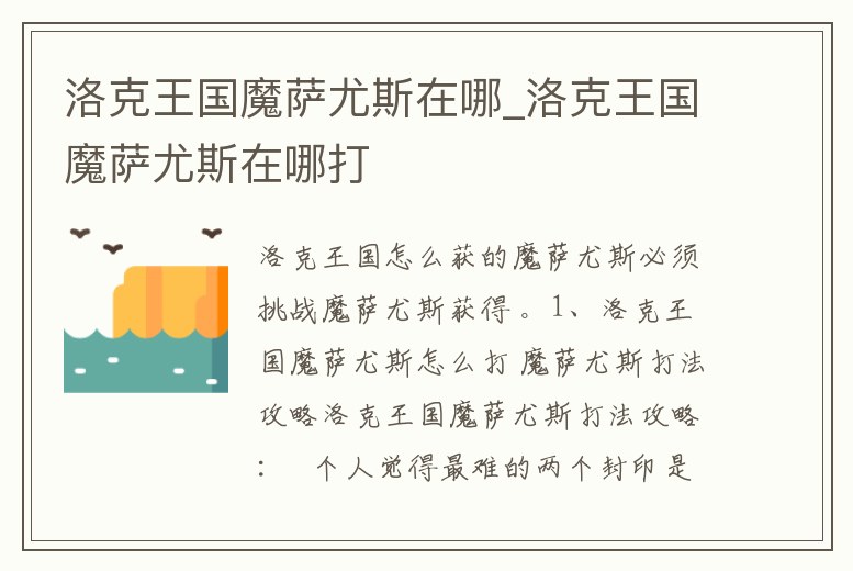 1、洛克王國魔薩尤斯怎么打 魔薩尤斯打法攻略
