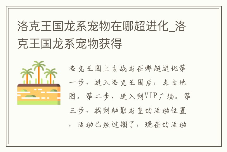 洛克王國龍系寵物在哪超進化_洛克王國龍系寵物獲得