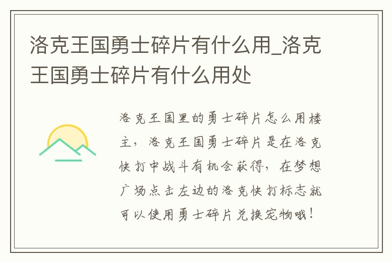 洛克王國勇士碎片有什么用_洛克王國勇士碎片有什么用處