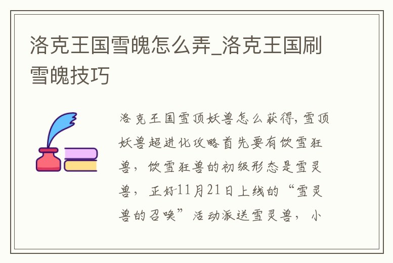 首先要有飲雪狂獸,飲雪狂獸的初級形態是雪靈獸,正好11月21日上線的“雪靈獸的召喚”活動派送雪靈獸,小伙伴們要記得參加哦!有了雪靈獸,就要把它升級到50級,這就達到了等級的條件,然后獲得冰魄和雪魄兩種道具。