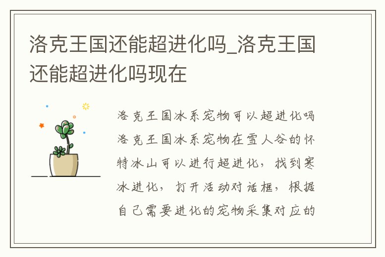 洛克王國還能超進化嗎_洛克王國還能超進化嗎現(xiàn)在