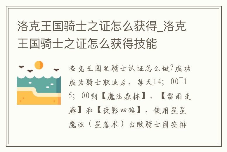 洛克王國騎士之證怎么獲得_洛克王國騎士之證怎么獲得技能