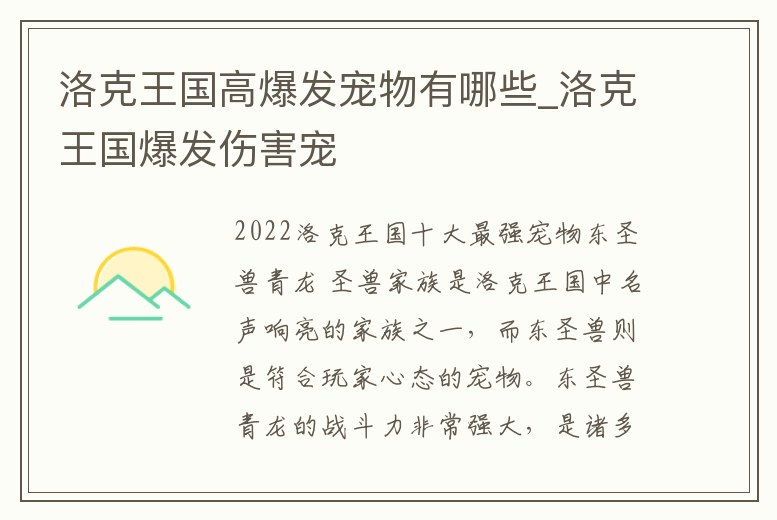 東圣獸青龍 圣獸家族是洛克王國中名聲響亮的家族之一,而東圣獸則是符合玩家心態的寵物。東圣獸青龍的戰斗力非常強大,是諸多玩家喜歡的寵物。一只平民寵物,很久前是星辰塔四層的獎勵,現在在高階天梯賽上雖然并不是非常。