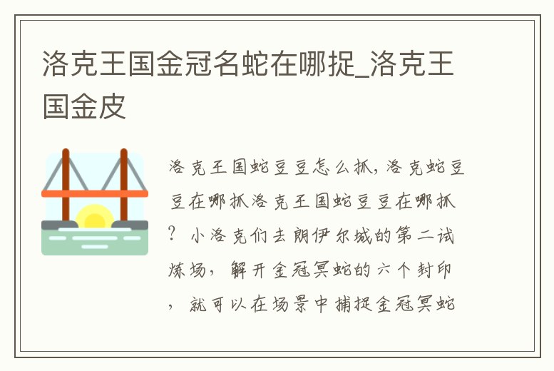 洛克王國蛇豆豆在哪抓?小洛克們去朗伊爾城的第二試煉場,解開金冠冥蛇的六個封印,就可以在場景中捕捉金冠冥蛇咯解除六角星的冰封,場景中會出現金冠冥蛇的第一形態寵物——蛇豆豆,小洛克們可以捕捉哦!蛇豆豆的捕捉星級。