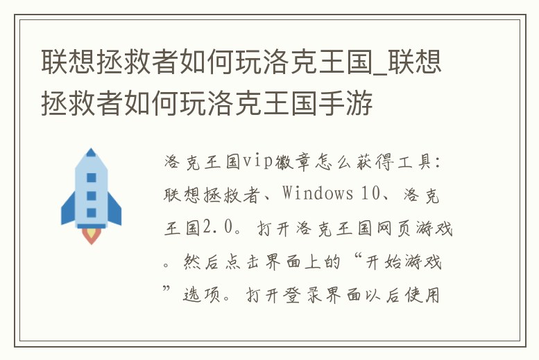 工具:聯想拯救者、Windows 10、洛克王國2.0。打開洛克王國網頁游戲。然后點擊界面上的“開始游戲”選項。打開登錄界面以后使用游戲賬號進行登錄。完成游戲賬號的登錄以后選擇頻道進入游戲界面。進入游戲界面以后。