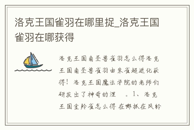 洛克王國雀羽在哪里捉_洛克王國雀羽在哪獲得