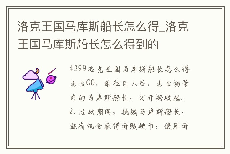 洛克王國馬庫斯船長怎么得_洛克王國馬庫斯船長怎么得到的