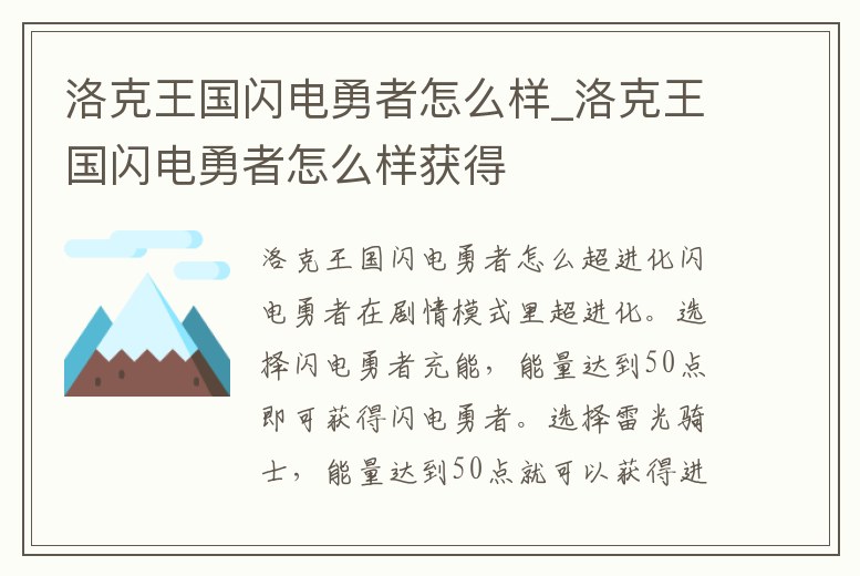 洛克王國閃電勇者怎么樣_洛克王國閃電勇者怎么樣獲得