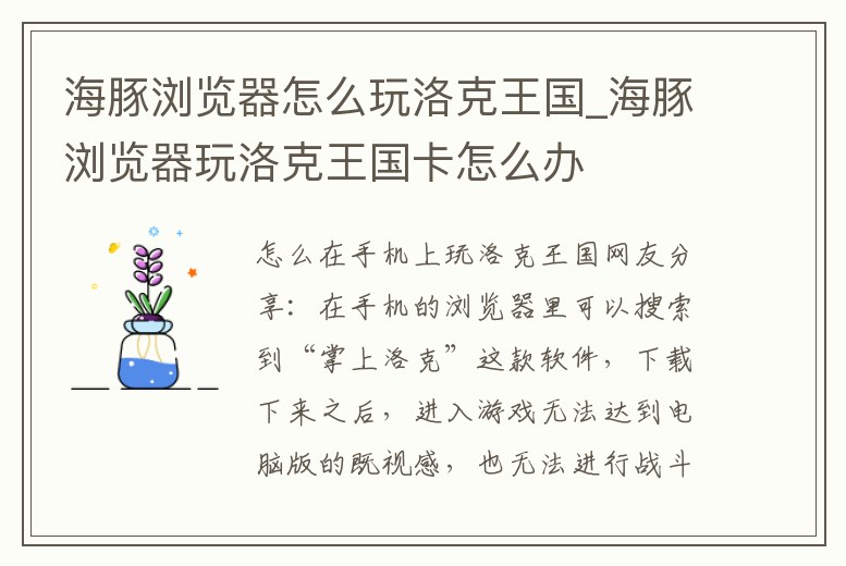 海豚瀏覽器怎么玩洛克王國_海豚瀏覽器玩洛克王國卡怎么辦