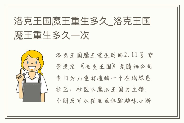重生前覺醒重生之后就不用了。因為你重生前覺醒了。魔王是洛克王國中的惡魔系的精靈王。全稱為暗夜魔王,有著強大的惡魔系能力。
