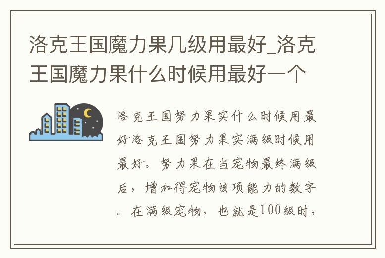 洛克王國魔力果幾級用最好_洛克王國魔力果什么時候用最好一個精靈