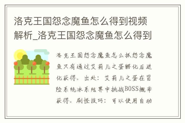 洛克王國怨念魔魚怎么得到視頻解析_洛克王國怨念魔魚怎么得到 視頻