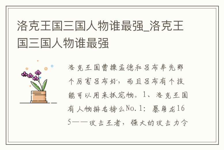 洛克王國三國人物誰最強_洛克王國三國人物誰最強