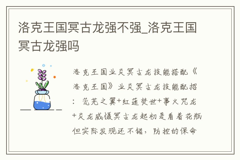 - 洛克王國冥古龍強(qiáng)不強(qiáng)_洛克王國冥古龍強(qiáng)嗎