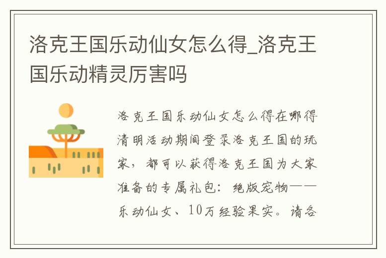 洛克王國樂動仙女怎么得_洛克王國樂動精靈厲害嗎
