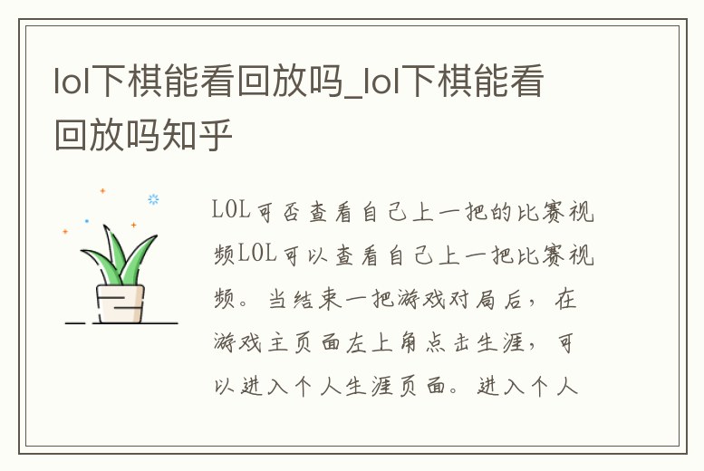 lol下棋能看回放嗎_lol下棋能看回放嗎知乎