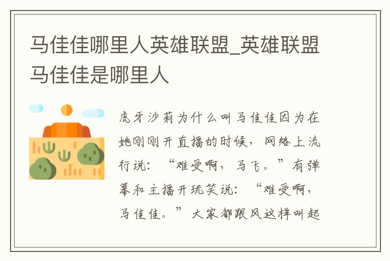 - 馬佳佳哪里人英雄聯(lián)盟_英雄聯(lián)盟馬佳佳是哪里人