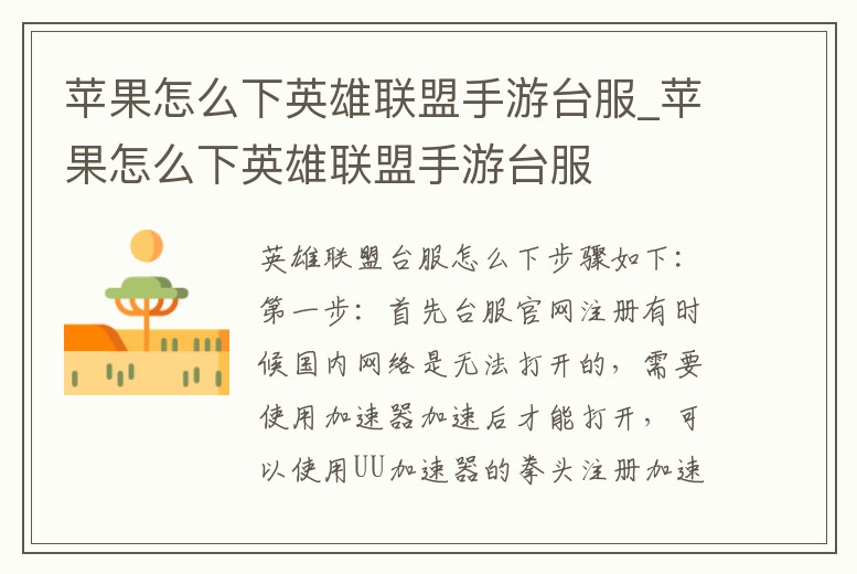 蘋果怎么下英雄聯盟手游臺服_蘋果怎么下英雄聯盟手游臺服